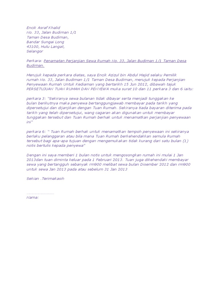 Surat Penamatan Sewa Rumah Pdf