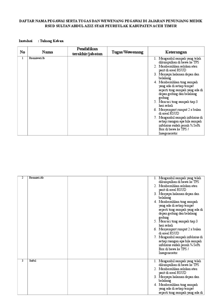 Senarai Tugas Pekerja Pembersihan Tukang Kebun Pdf